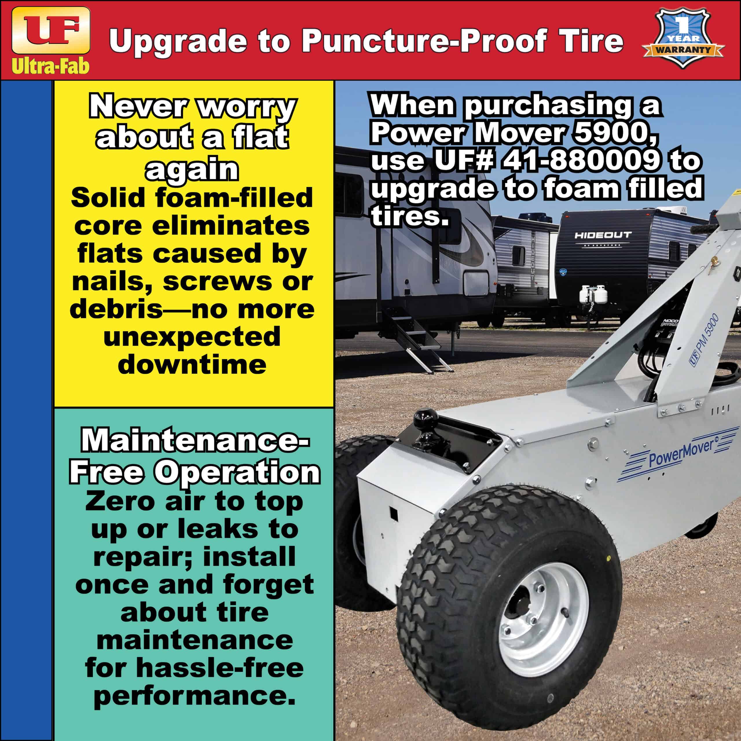 - Puncture-Proof Design: When ordering a Power Mover 5900, you can upgrade from the pneumatic times to this foam filled tires. Never worry about a flat again. Solid foam-filled core eliminates flats caused by nails, screws or debris—no more unexpected downtime.