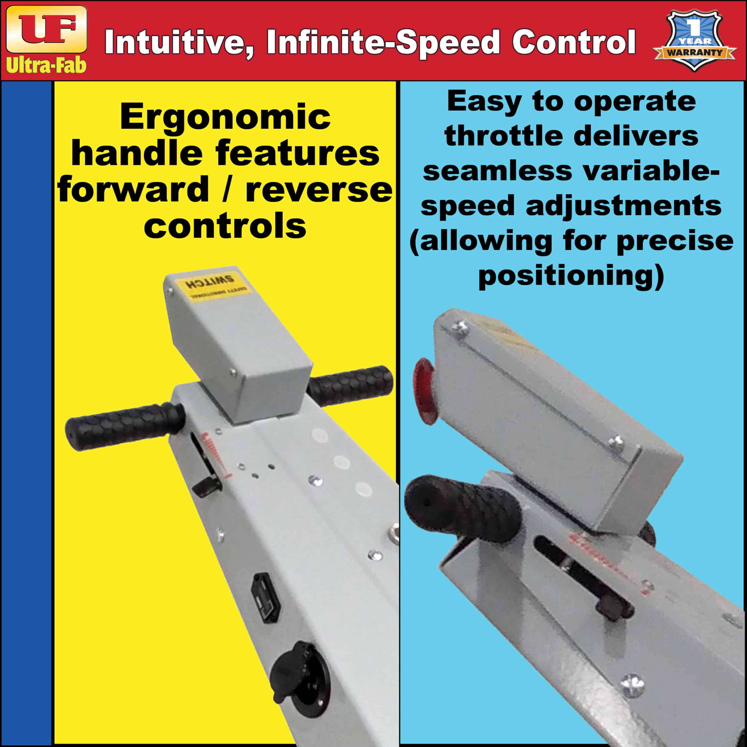 - Effortless Precision Control: Ergonomic handle with forward/reverse controls plus infinite-speed throttle for smooth, low-speed torque. Emergency safety reversing switch and adjustable drive-chain tighteners keep operation safe and reliable.